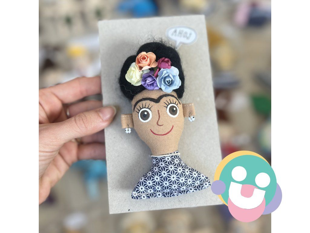 Brošnička Mexičanka je originálna textilná brošňa vyrobená zo 100% bavlny. Je plnená dutým vláknom. Vlásky má z ovčieho rúna, časti tváre maľované farbami na textil fixované teplom. V uškách má náušnice z koráliek, vo vlasoch papierové kvietky, obočie vyšívané ...