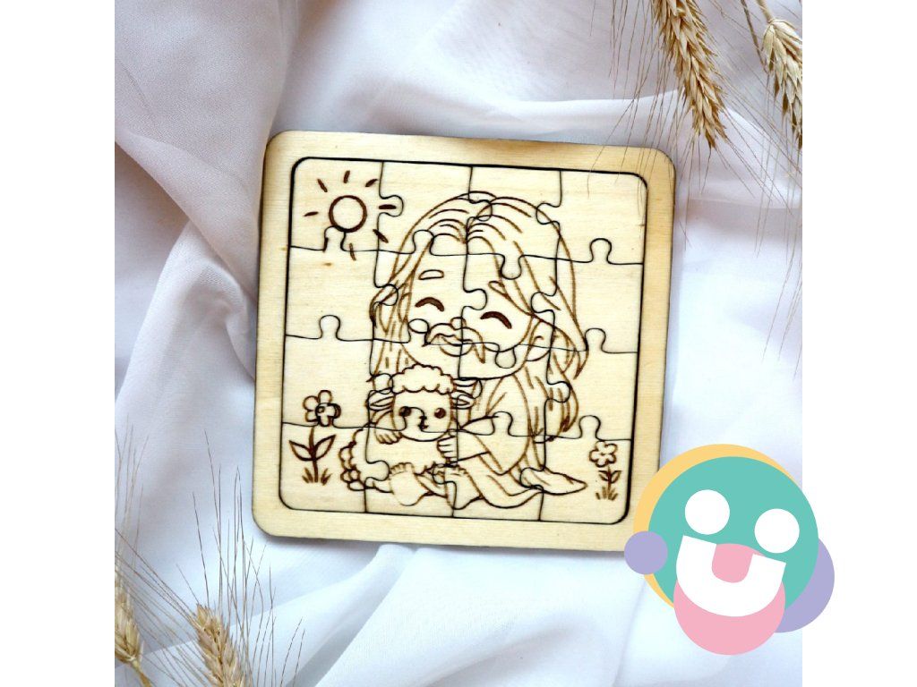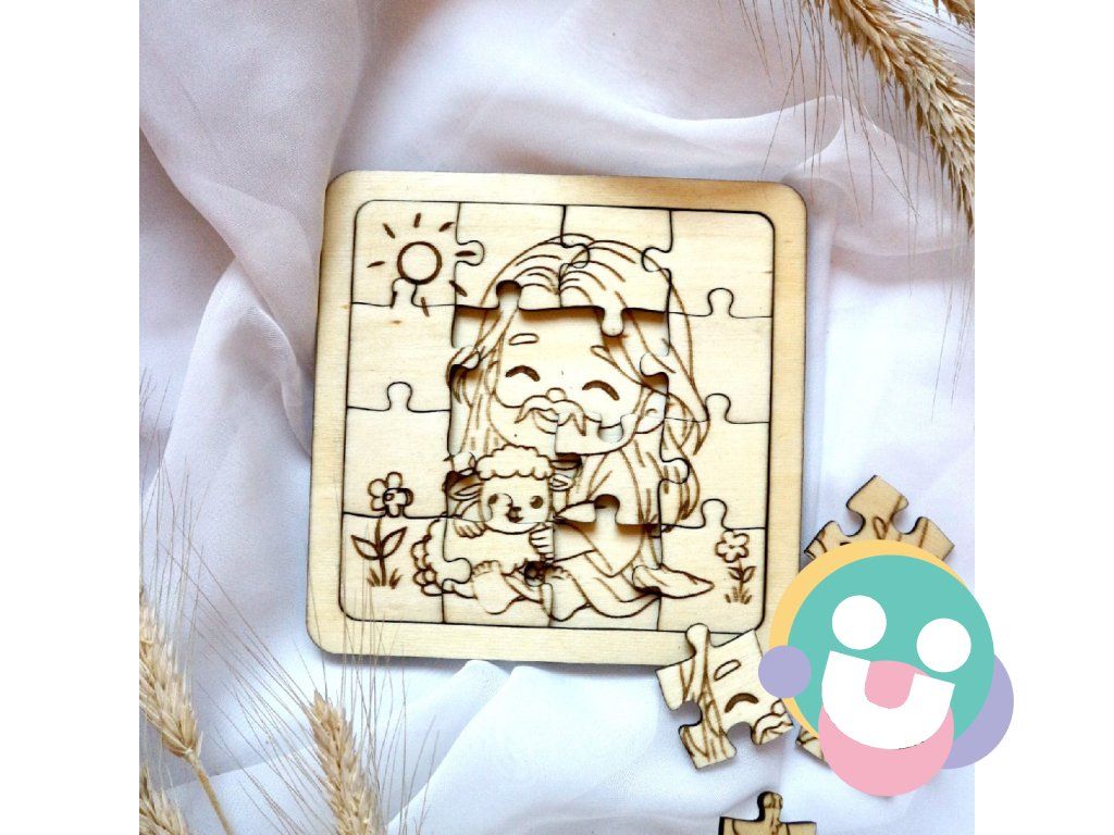 Vďaka tomuto dreveného puzzle si deti môžu hlbšie prehĺbiť vzťah s Ježiškom ako ich pastierom a prijať tak to, že oni sú Jeho ovečkami.