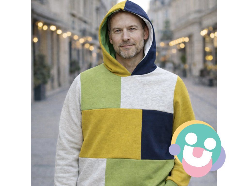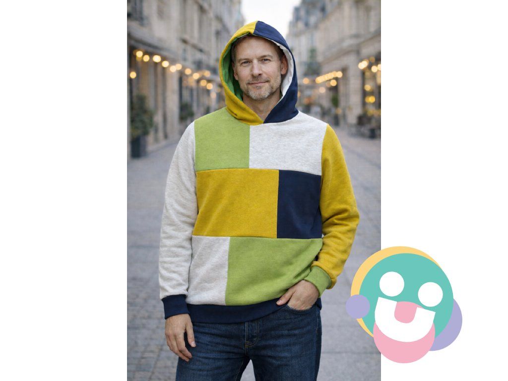 Hráva mikina plná farebnosti, cez hlavu, s kapucňou