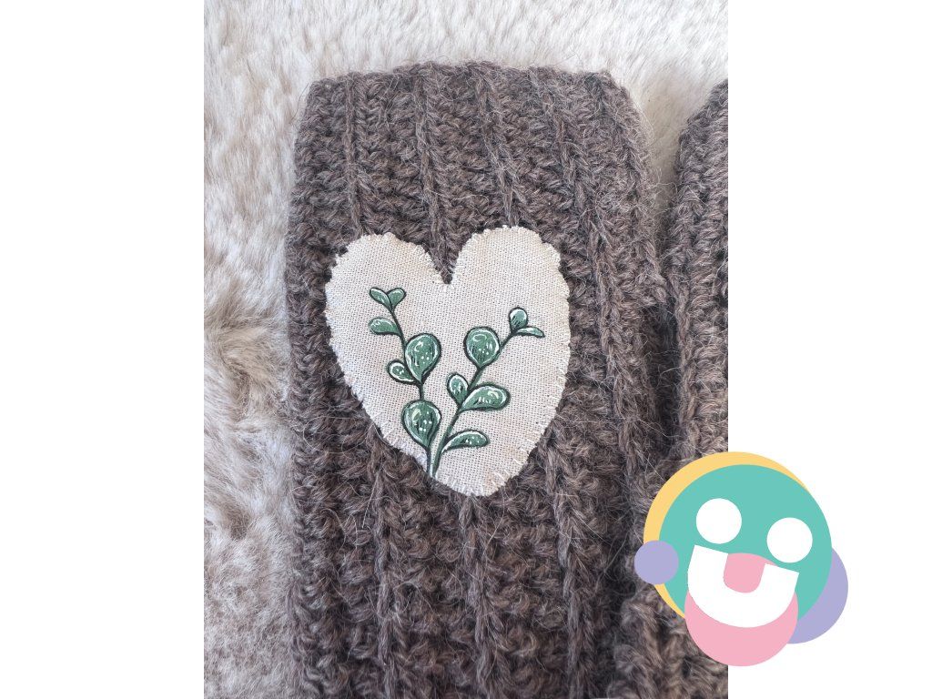 Rukavice sú vyrobené lokálne na Slovensku zo zmesi ovčej a alpaka vlny. Podkladová látka maľby je 100% bavlna.