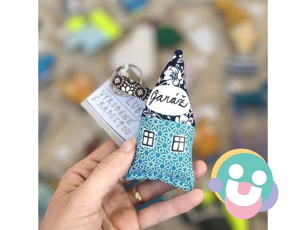 Kľúčenka domček je vyrobená zo 100% bavlny, je plnená dutým vláknom. Okienka a ďalšie maľované časti sú starostlivo namaľované farbami na textil, fixované teplom.