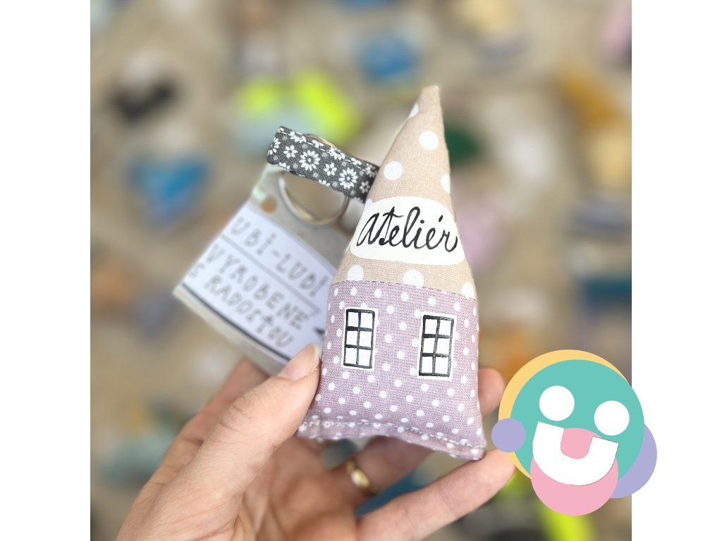 Kľúčenka domček je vyrobená zo 100% bavlny, je plnená dutým vláknom. Okienka a ďalšie maľované časti sú starostlivo namaľované farbami na textil, fixované teplom.