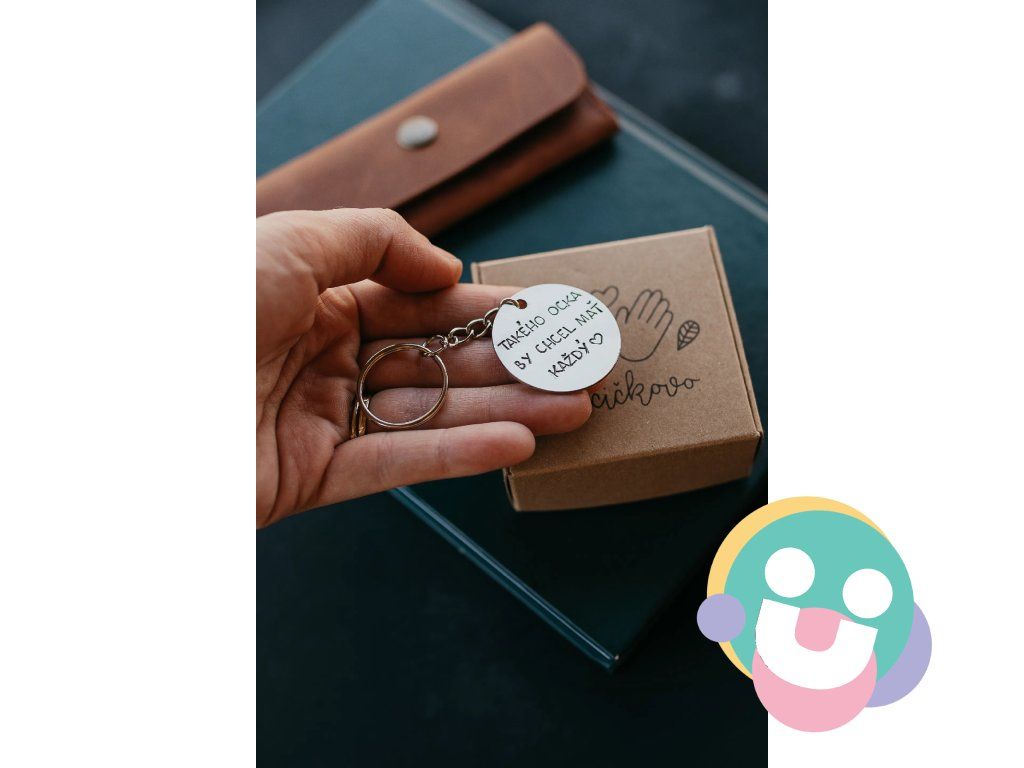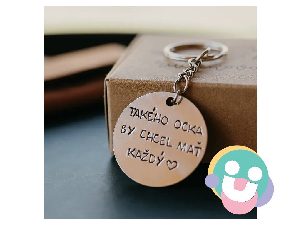 Prívesok na kľúče vyrobený z nerezovej ocele striebornej farby s ručne vyrazeným textom:"Takého OCKA by chcel mať každý" a vyrazeným srdiečkom za textom.