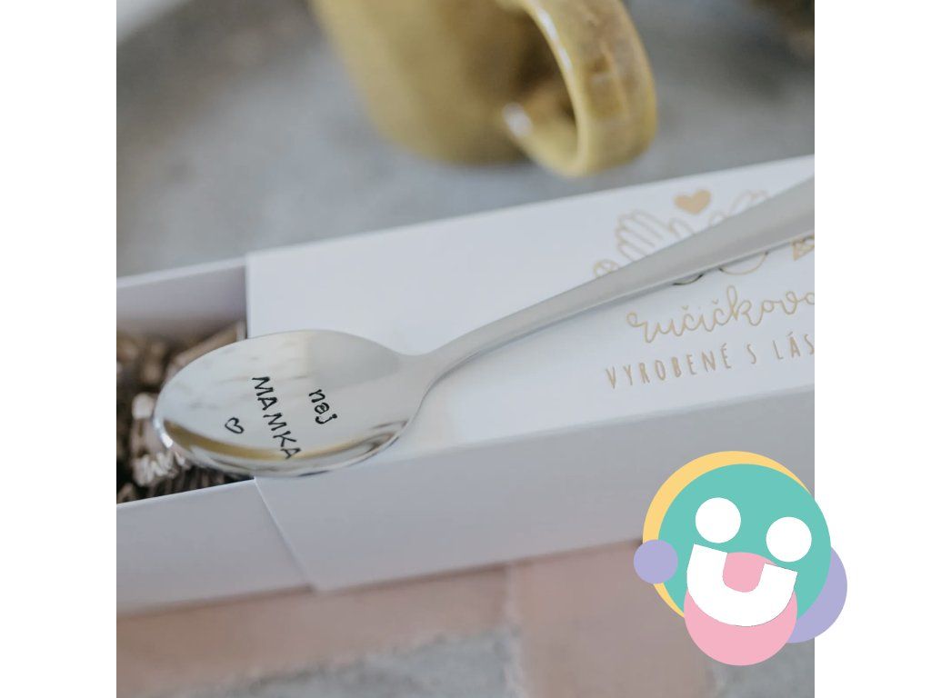 Lyžička vyrobená z ocele s ručne vyrazeným textom "naj MAMKA". Pod textom je ručne vyrazený symbol srdiečka. Text je ručne vyrazený v dolnej naberacej časti. Jedná sa o čajovú lyžičku s dĺžkou 14cm.