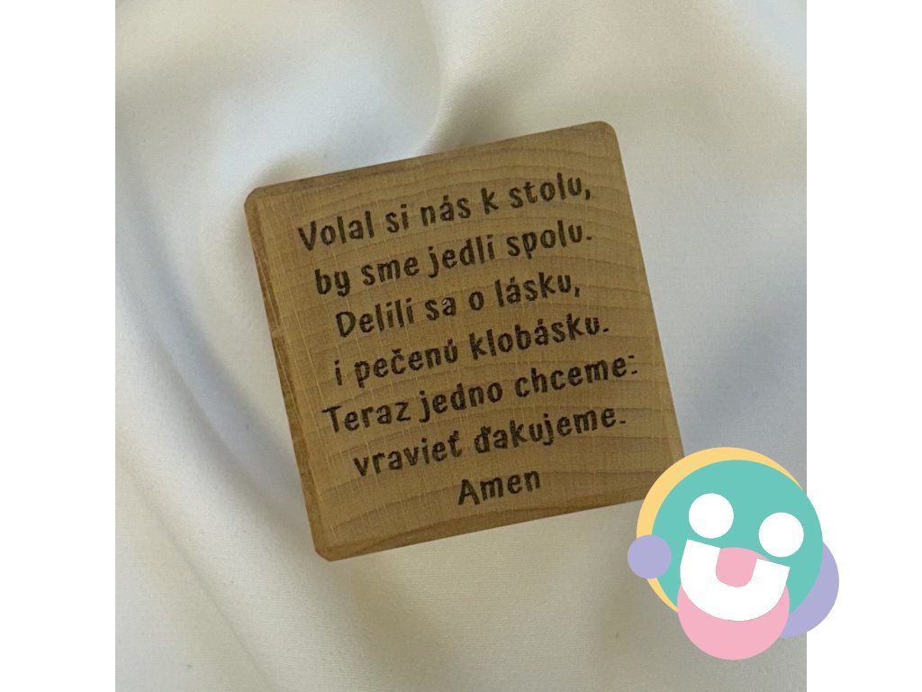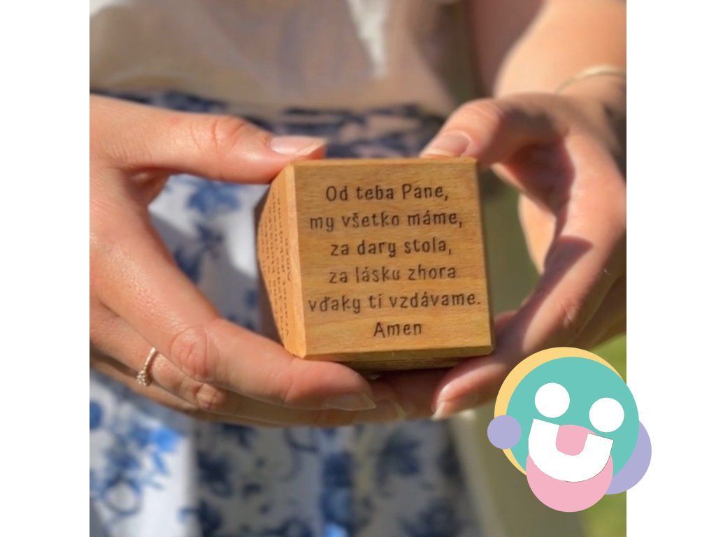 Modlikocka na každej strane obsahuje modlitbu pred jedlom pre deti. Takýmto spôsobom sa počas spoločnej modlitby rodina viac zblíži a hravým spôsobom deti prehĺbia svoj vzťah s modlitbou a Bohom.