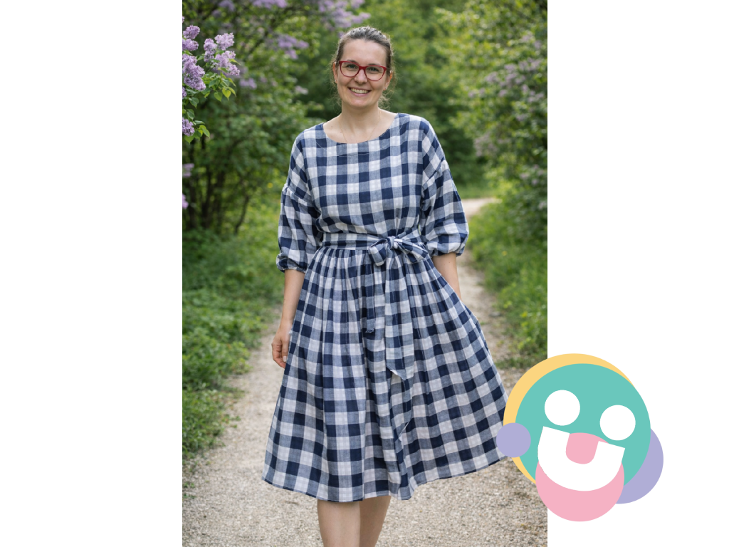 Šaty sú vyrobené zo 100% bavlny, majú vnútorné skryté vrecka, zapísanie na chrbte je na viazanie