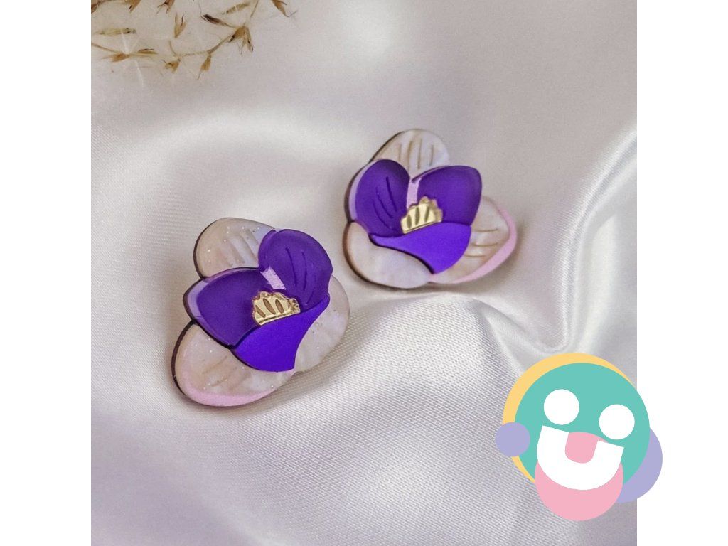 Dodajte svojmu vzhľadu nádych elegancie s napichovačkami Krokusy s ručne maľovanými fialovými a ružovými kvetmi, ľahkými a antialergénnymi.