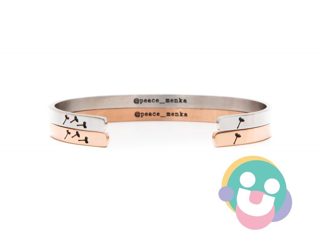 Náramok je otvorený a jeho veľkosť je prispôsobiteľná na ruku, nakoľko sa dá jemne roztiahnuť a rovnako aj stlačiť do vnútornej strany a zmenšiť.