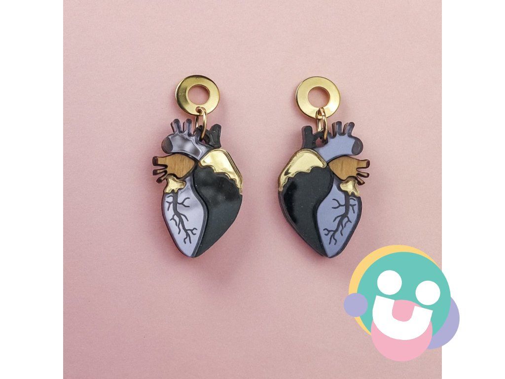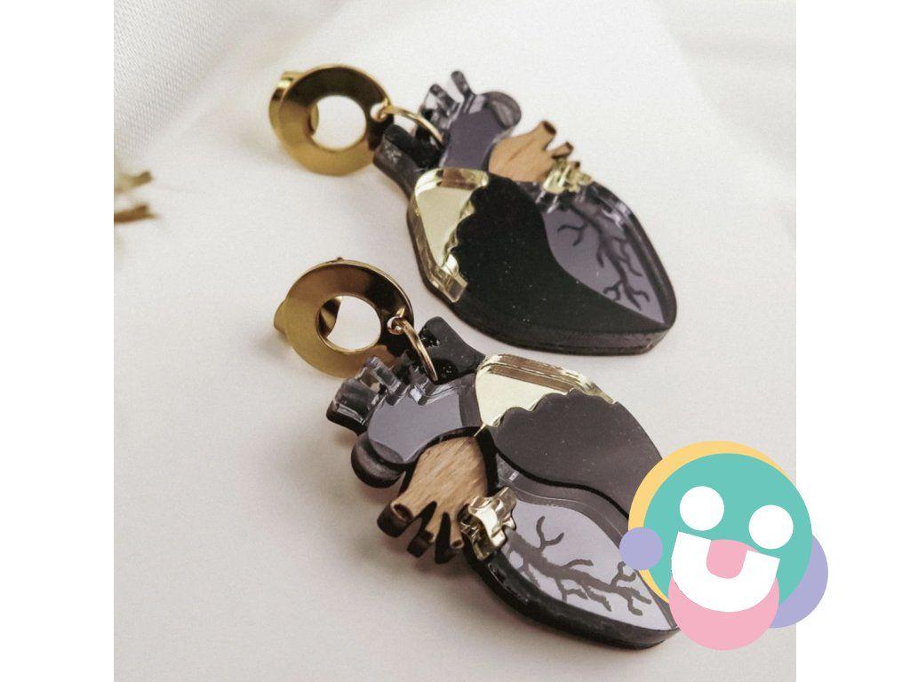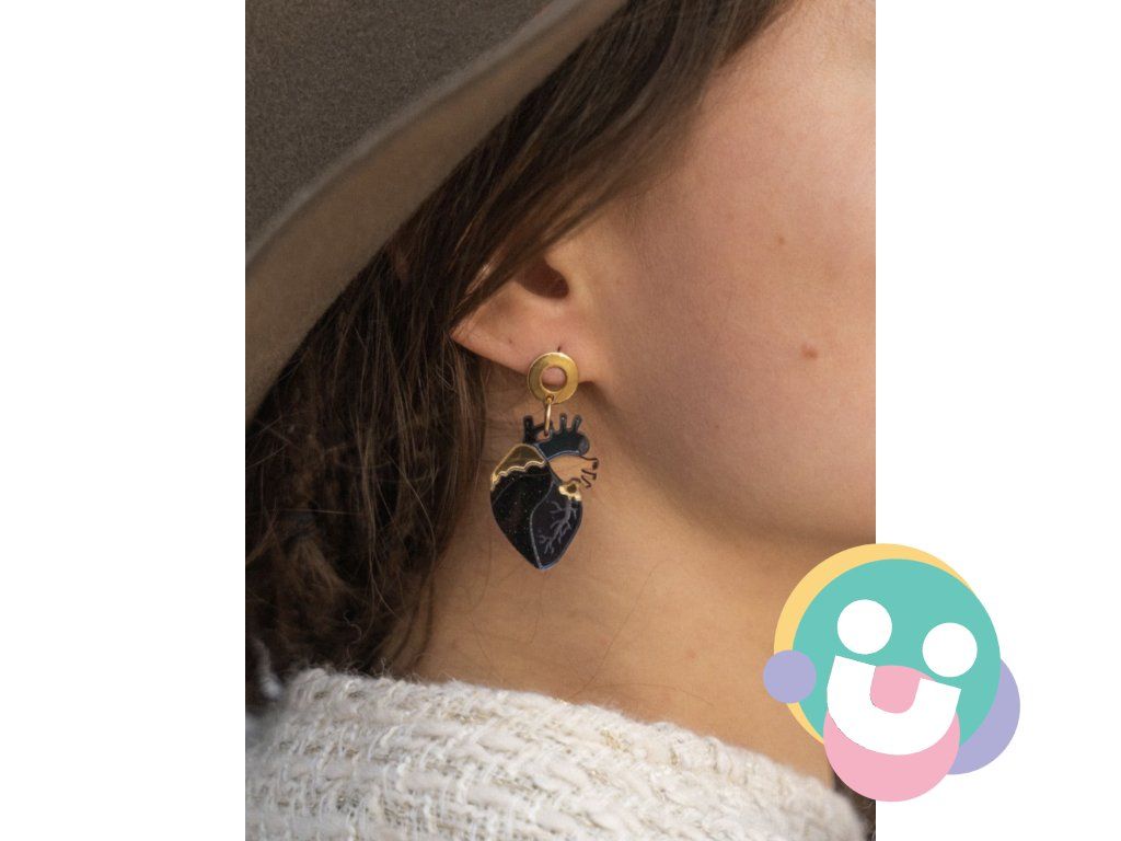 Objavte naše náušnice v tvare anatomického srdca, vyrobené z čierneho mramorovaného a zlatého akrylu. Ľahké, odolné a ideálne pre výrazný a jedinečný štýl.