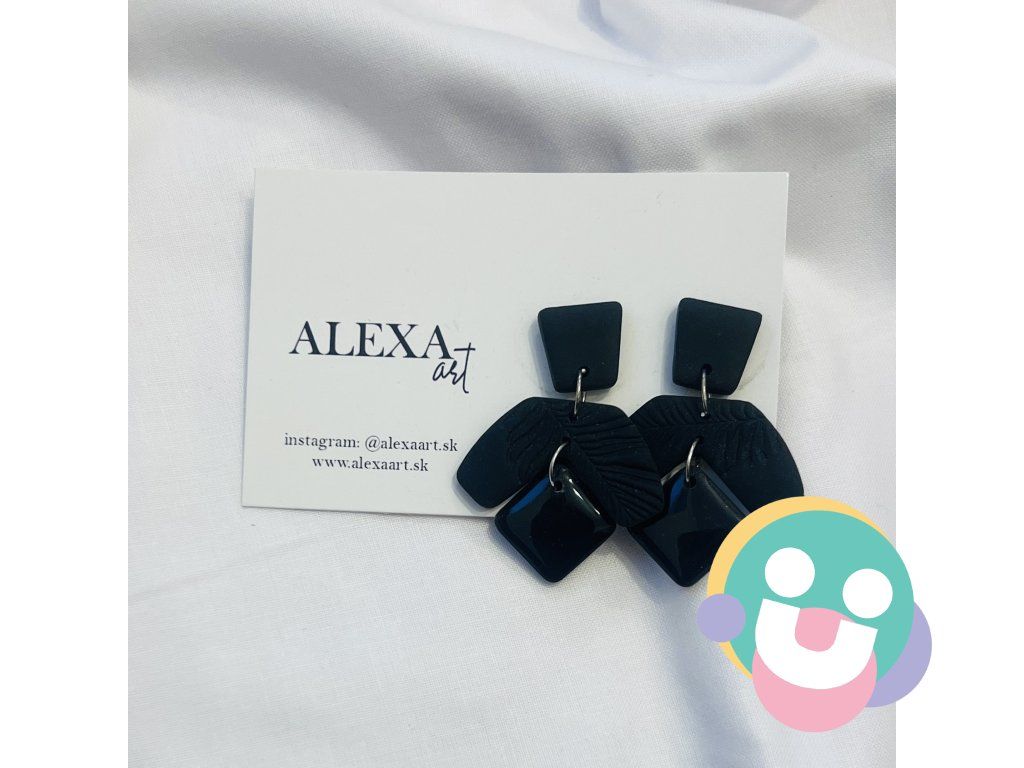 Jedinečné náušnice. Každý kúsok je jedinečný originál, ručne vyrobený preto môže mať mierne odchýlky oproti fotografii. Sú vyrobené z polymérovej hmoty. Zapínanie je z chirurgickej ocele.