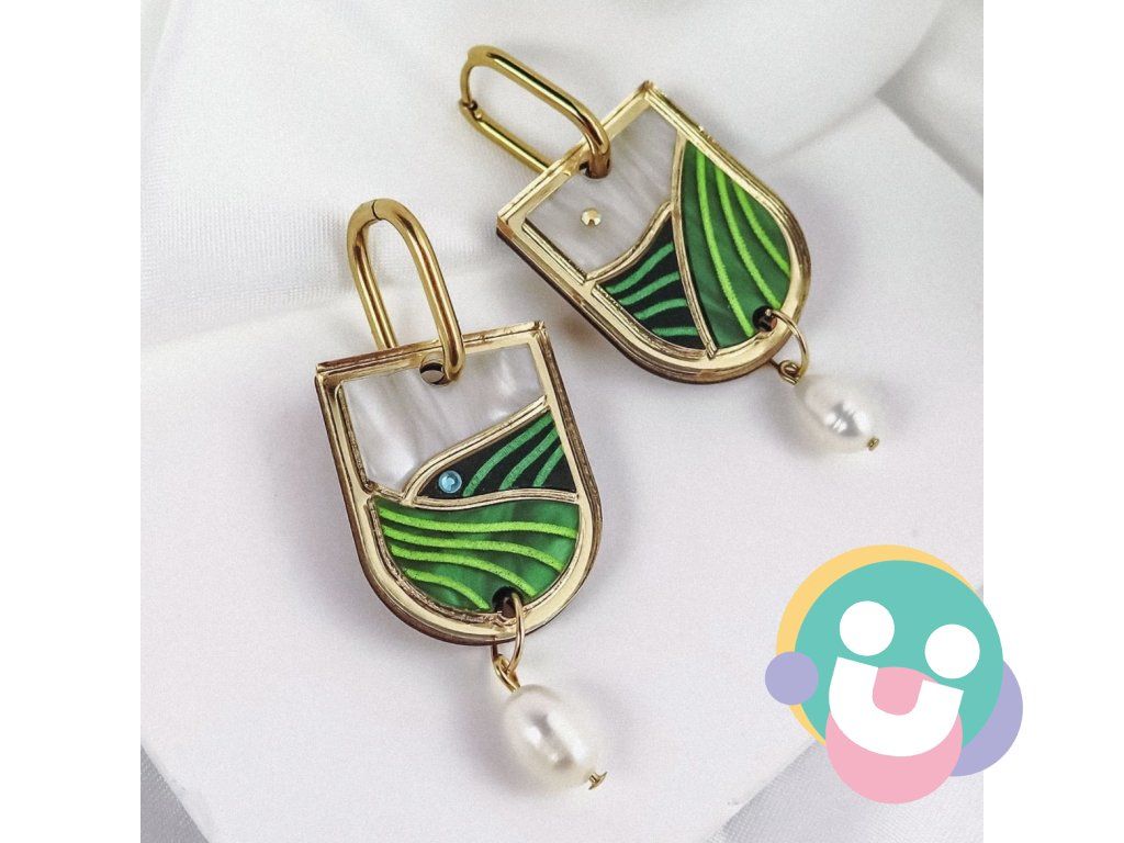 Vstúpte do sveta elegancie s našimi secesnými visacími náušnicami inšpirovanými vinicami, ktoré sú zdobené ručne vyrobeným akrylom, perlami a kamienkami pre nadčasový šarm.