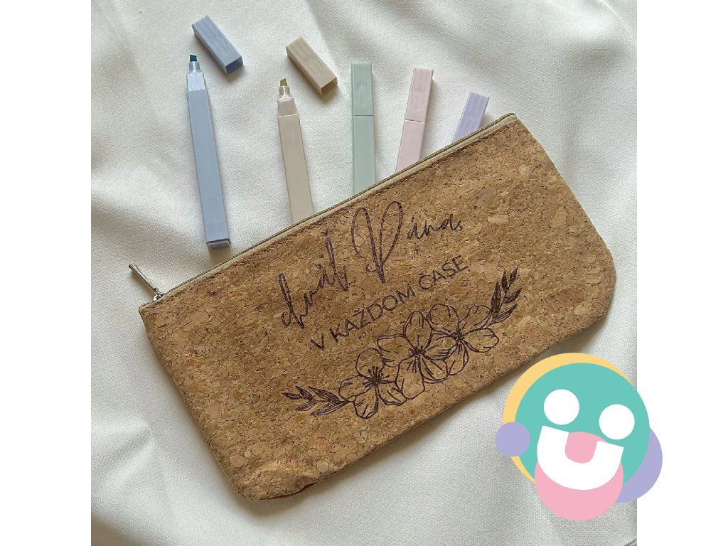 Korkový peračník je obohatený o náš gravírovaný dizajn.