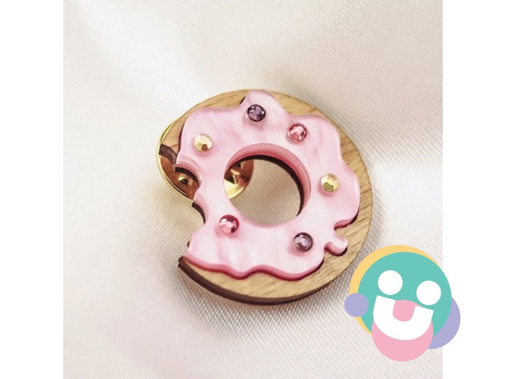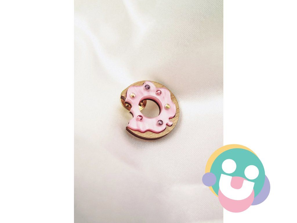 Dodajte svojmu vzhľadu štipku rozmarnosti s ručne vyrobeným pinom v tvare donutu, ozdobeným farebnými kamienkami a navrhnutým pre milovníkov jedinečného štýlu.