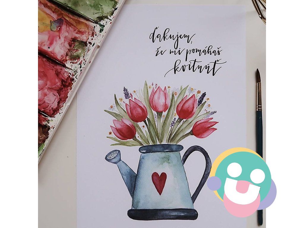 Ako som to písala aj v nedávnom príspevku, téma júnového čísla bola materstvo a to, aby mamy pri starostlivosti o iných nezabúdali aj na starostlivosť o seba. Keďže mamy sa podľa mňa starajú o to, aby všetci okolo nich prekvitali, vybrala som si motív kvetov, konkrétne teda kytice :) Aby však kvety kvitli, potrebujú živiny a vodu, čoho symbolom je krhla, ktorú mamy používajú, keď láskou zalievajú svojich drahých. Rozhodla som sa kvety ponoriť práve do tejto krhly, aby tak ako láskou naše mamy zalievajú všetkých okolo, nezabudli ponoriť do živej vody aj seba samé a prejaviť si lásku. Len tak môžu oni a všetci okolo nich prekvitať. A pre obe strany (mamy, aj tí, o ktorých sa starajú) bude platiť: ďakujem, že mi pomáhaš kvitnúť