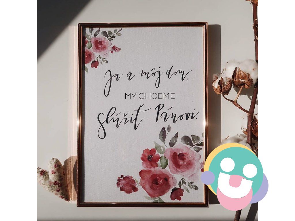 Tento print je opäť inšpirovaný citátom z Biblie a to konkrétne z knihy Jozue, kedy stál izraelský národ pred otázkou, komu chcú slúžiť, teda voči komu chcú byť úprimní a verní. Aj my veľakrát v živote máme mnoho volieb a rozhodnutí a niekedy sa aj nám možno stane, že to, čo síce hovoríme svojimi ústami, sa nie vždy zhoduje s našimi skutkami. Ja osobne si tiež niekedy staviam svoje vlastné modly a nemyslím teraz nejaké sošky bôžikov :) Len sa občas prichytím pri tom, že svoj čas, energiu, dary a talenty venujem nesprávnym veciam - takým, čo nechávajú srdce prázdne. Som však vďačná, že vždy keď si to uvedomím, tak sa môžem vrátiť späť a začať odznova :) Tak nech je aj tento art print pripomienkou, aby sme investovali do toho, čo za to skutočne stojí a prináša hodnotu aj z pohľadu večnosti.