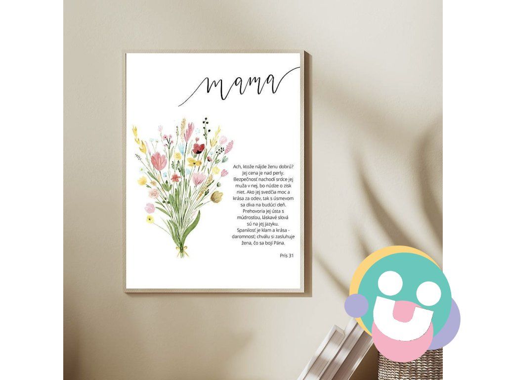Print s autorskou ilustráciou a textom zo Svätého Písma - „Kto nájde ženu dobrú? Je omnoho cennejšia než perly. Bezpečnosť nachodí srdce jej muža v nej, bo núdze o zisk niet. Ako jej svedčia moc a krása za odev, tak s úsmevom sa díva na budúci deň. Spanilosť je klam a krása - daromnosť; chválu si zasluhuje žena, čo sa bojí Pána.” Prísť 31