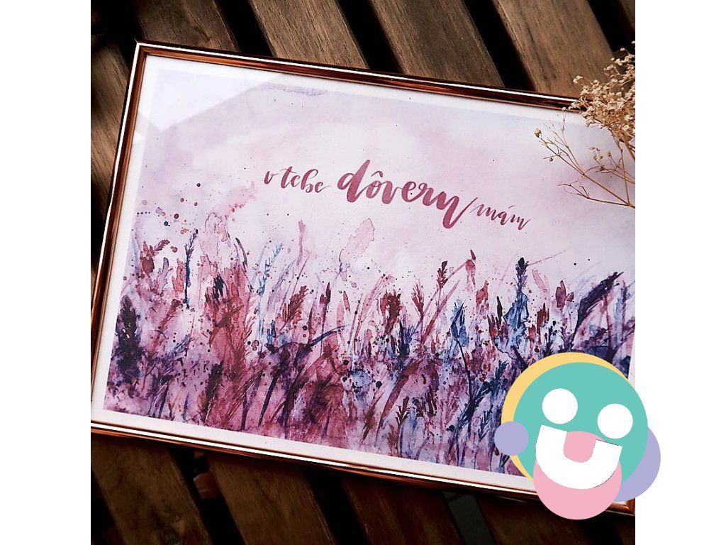 Ručne maľovaná akvarelová ilustrácia doplnená vlastnoručným kaligrafickým nápisom v digitálnej forme vytlačená na akvarelový papier.
