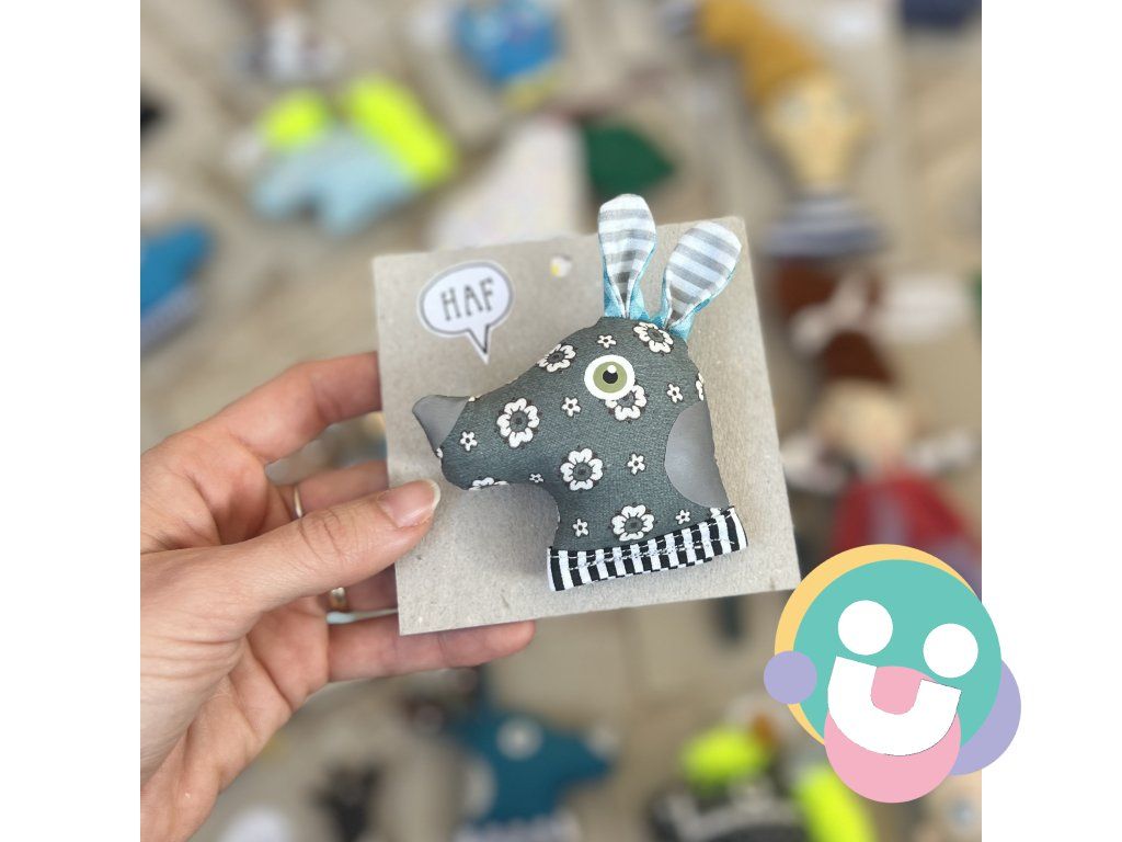 reflexná brošnička, je brošňa vyrobená zo 100% bavlny, plnená dutým vláknom. Oči má starostlivo namaľovaný farbami na textil, fixované teplom. Na telíčku má nažehlené fľaky z reflexnej fólie. Brošnička má doplnky z filcu