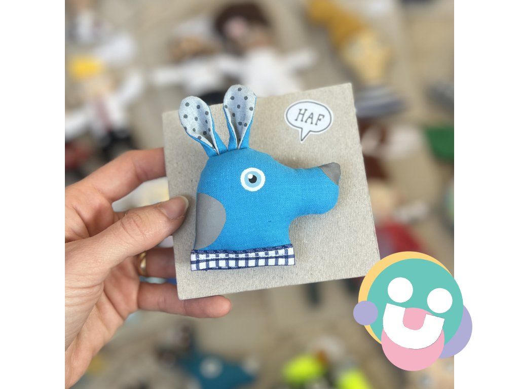 reflexná brošnička, je brošňa vyrobená zo 100% bavlny, plnená dutým vláknom. Oči má starostlivo namaľovaný farbami na textil, fixované teplom. Na telíčku má nažehlené fľaky z reflexnej fólie. Brošnička má doplnky z filcu