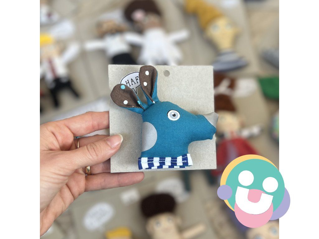 reflexná brošnička, je brošňa vyrobená zo 100% bavlny, plnená dutým vláknom. Oči má starostlivo namaľovaný farbami na textil, fixované teplom. Na telíčku má nažehlené fľaky z reflexnej fólie. Brošnička má doplnky z filcu