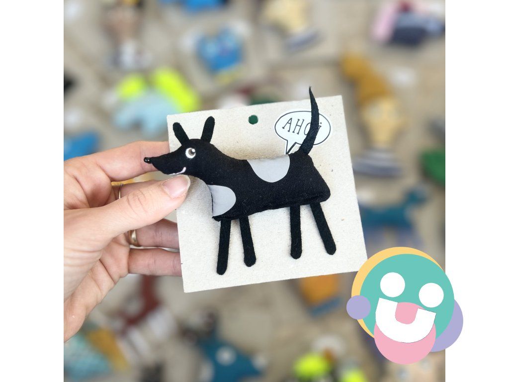 reflexná brošnička, je brošňa vyrobená zo 100% bavlny, plnená dutým vláknom. Oči má starostlivo namaľovaný farbami na textil, fixované teplom. Na telíčku má nažehlené fľaky z reflexnej fólie. Brošnička má doplnky z filcu