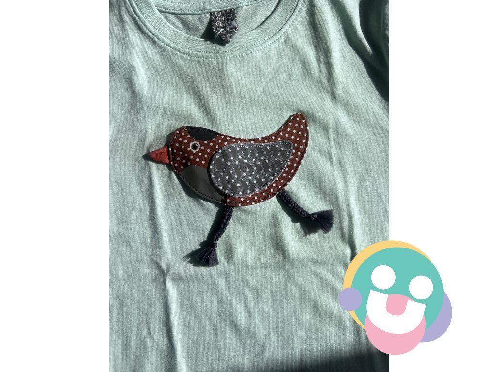 Medzi nášivkou a tričkom je umiestnené pískátko ktoré píííííííska o priemere do cca 5 cm. Nášivka je vyhotovená zo 100% bavlny.