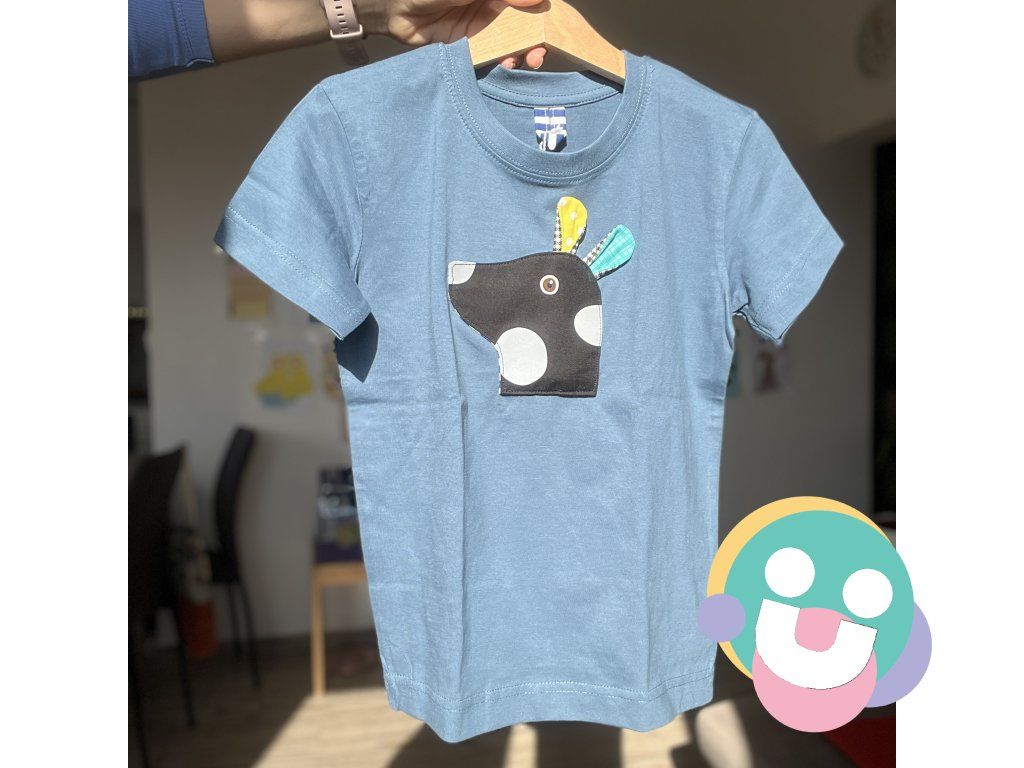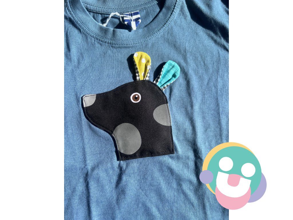 Medzi nášivkou a tričkom je umiestnené pískátko ktoré píííííííska o priemere do cca 5 cm. Nášivka je vyhotovená zo 100% bavlny.