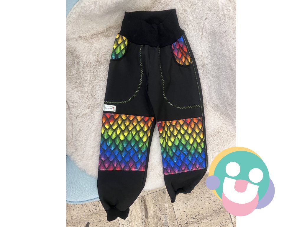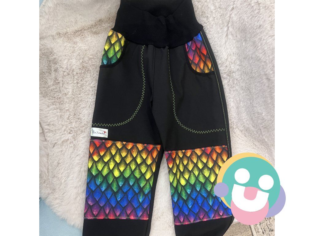 Krásne ručne šité dizajnové softshelové nohavice vyrobené zo zimného softshelu vhodné od jesene až do jari. Takmer celoročné nosenie na výlety, do prírody a či do škôlky