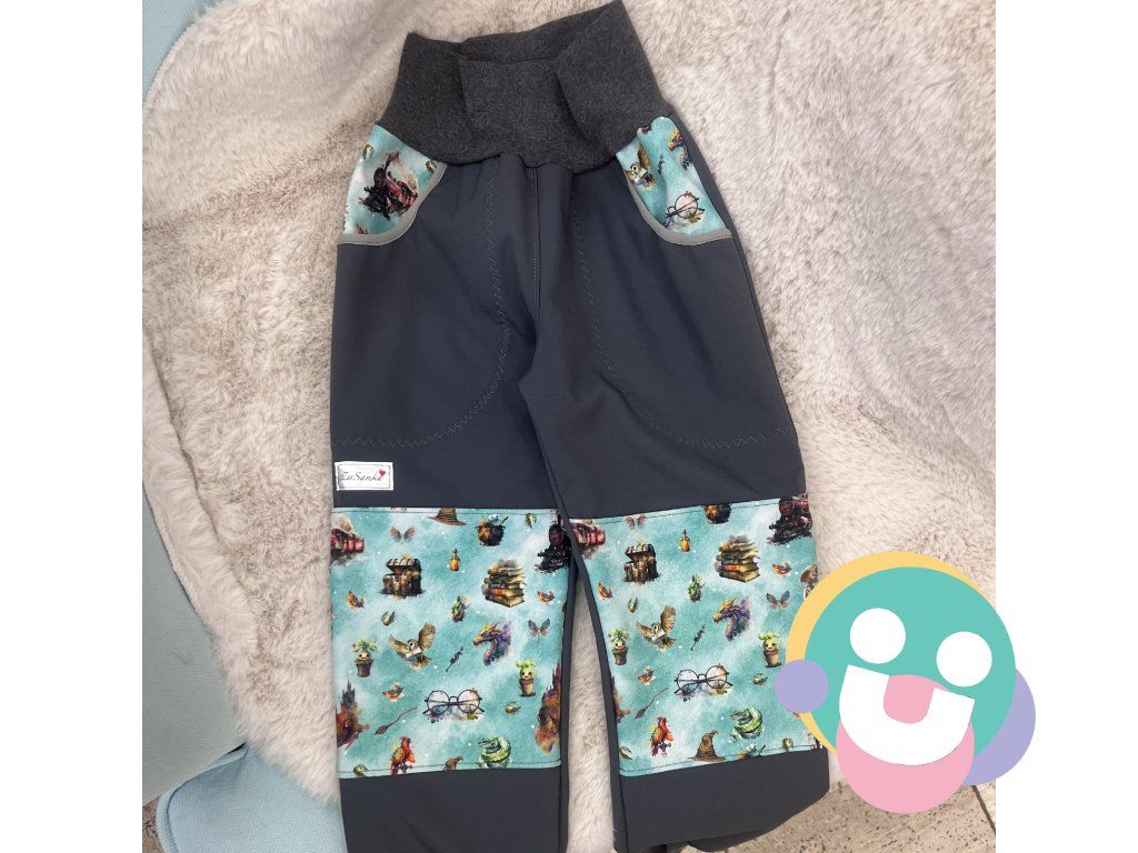 Krásne ručne šité dizajnové softshelové nohavice vyrobené zo zimného softshelu vhodné od jesene až do jari. Takmer celoročné nosenie na výlety, do prírody a či do škôlky