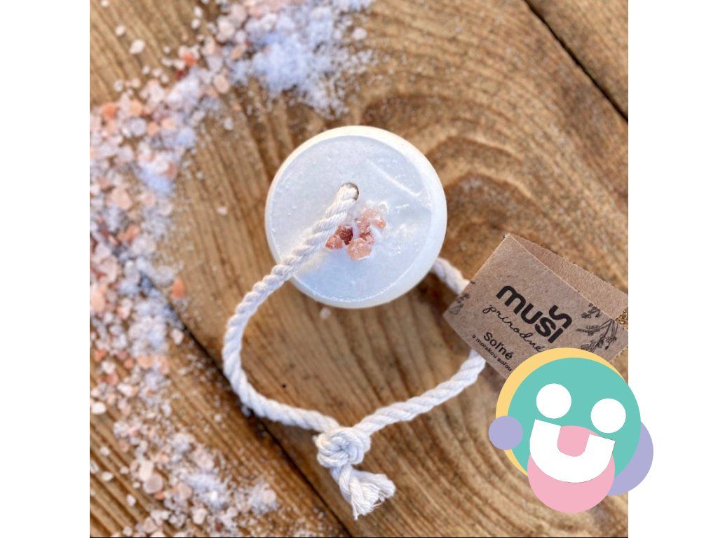 Naše soľné mydlo na šnúrke je obohatené o morskú soľ a doplnené o ružovú himalájsku soľ. Jemne čistí pokožku, odstraňuje odumreté bunky a zanecháva ju hladkú a sviežu. Vďaka šetrnému zloženiu je vhodné aj pre citlivú pleť.