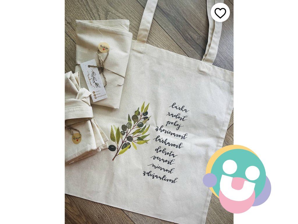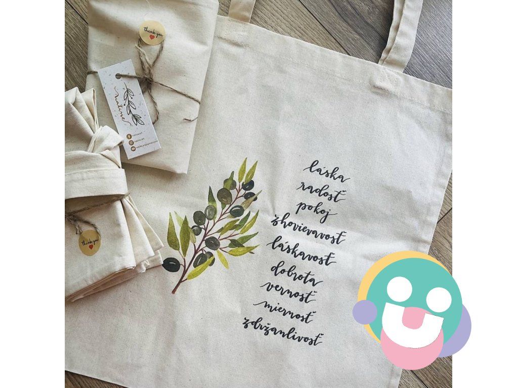 Motív je autorská akvarelová maľba aplikovaná na tašku digitálnou potlačou.